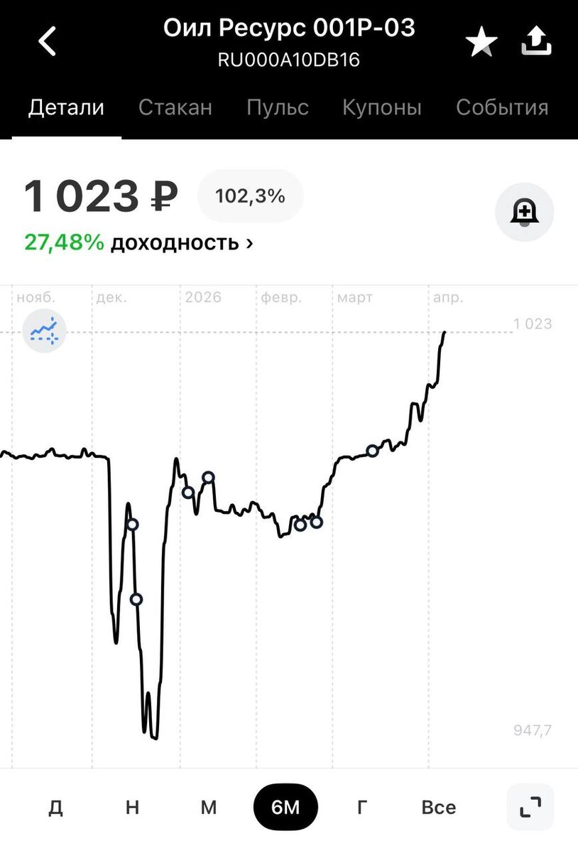 ☀️ ✅ Как я мог забыть вам сообщить, что пришли купоны по облигациям Оил Ресурс $RU000A10DB16 Хорошие облигации с доходностью 29% — почему бы не взять? 📈 Цена выросла до 1023 ₽ за облигацию Вероятно могут большими объемами скинут на 990… но это лишь догадки, верим в лучшее!