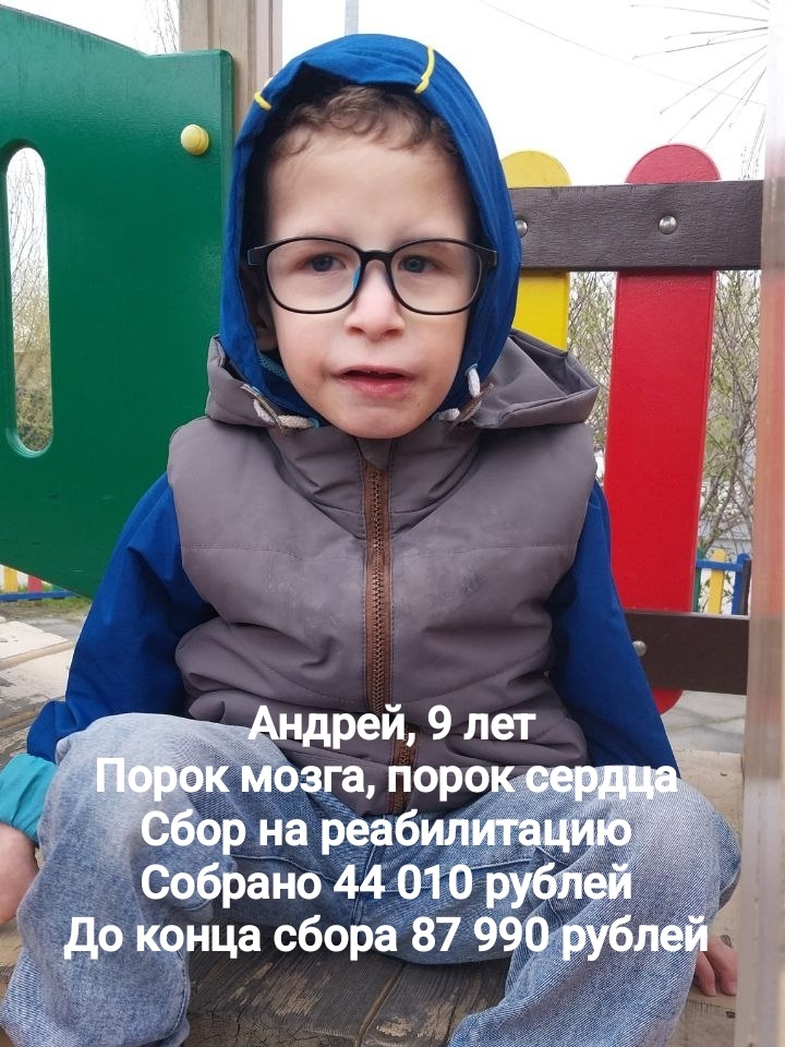 Ребята, разыскиваются 88 090 рублей. Ровно столько нужно для выхода Андрейки на такую важную и такую добрую реабилитацию. А это значит, что мы с вами большие молодцы. Вашими стараниями и с помощью Божией мы собрали уже больше трети всей необходимой суммы. Это победа. Андрейка с мамой вам очень благодарны. Просили низкий поклон передать. Вот, передаём. А теперь садитесь поближе — про Андрейку историю расскажем. Однажды, девять лет назад, в маленьком тюменском селе родился кучерявый мальчишка. Мама Лена ждала сыночка с радостью и большими надеждами. Но вышло иначе. Родилось наше Чудо с пороками головного мозга и сердца. Шансов на жизнь у парня почти не было — так сказали врачи. И вот Андрею уже девять. Девять! Он невероятно обаятельный. А ещё он теперь ученик первого класса. Учится индивидуально — но это уже школа. А ещё он напевает мелодии. Да так чисто, что любой прохожий с первого такта угадает песню. А ещё он любит книжки и советские мультики. Те самые, которые мы с вами в детстве на