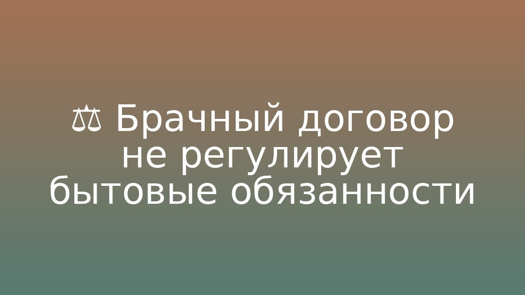 Условия о личных обязанностях, в том числе о бытовых вопросах (например, кто готовит завтрак), недопустимы и не соответствуют положениям Семейного кодекса РФ.