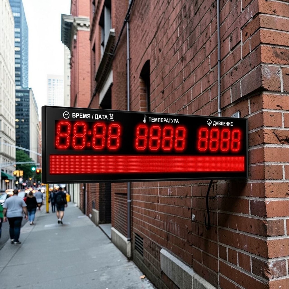 » На основе информации с сайта [groundsport.ru](https://groundsport.ru/magazin/folder/meteotablo-s-begushchej-strokoj), вот основные сведения о продукции: ### 🔹 Назначение и функционал - Электронные метеотабло серии «Импульс» с дополнительным текстовым индикатором (бегущей строкой) - Отображают: - Текущее время и дату - Температуру воздуха (индекс «Т» в маркировке) - Атмосферное давление (индекс «P») - По запросу: влажность, радиационный фон, скорость ветра (данные выводятся попеременно) - Бегущая строка позволяет транслировать рекламные и информационные сообщения ### 🔹 Конструкция и дизайн | Параметр | Значение | |----------|----------| | Конфигурация | Горизонтальная: 2–3 цифровых индикатора + бегущая строка снизу | | Высота цифр | 80 мм или 100 мм | | Цвет свечения | Красный, жёлтый, зелёный, синий, белый, пурпурный (возможна комбинация) | | Корпус | Металлический, цельный или на раме, с алюминиевым анодированным профилем | | Лицевая панель | Акриловое стекло или композит | | З