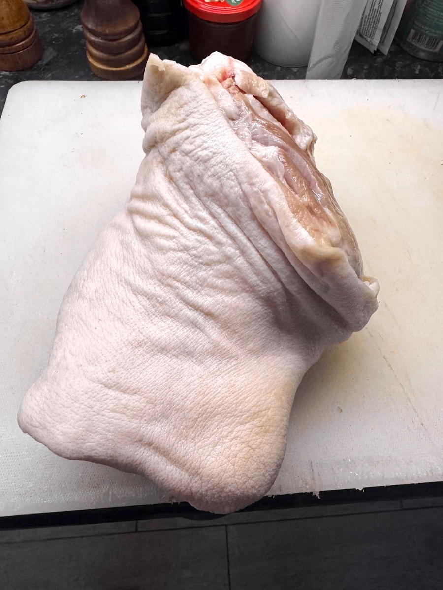 Доброго вам дня, дорогие любители рулек в 100500 ее проявлениях! 😊 Брать одну рульку и правда считаю не совсем правильным. Потому что странно брать рульку, чтобы приготовить какое-то блюдо только для себя (из предыдущего рецепта), которое семья есть не сможет из-за нелюбви к капсаицину. Поэтому была взята и вторая рулька для последующего запекания. Это тоже двухдневная история. Но мы ведь здесь собрались не для того, чтобы обсуждать, как приготовить комплексный обед, залив «бич-пакет» кипятком на пять минут 😊 В первый день действия такие: · Отделить мясо от кости одним пластом · Кости пока убрать в сторону · Мясо из рульки тонко порезать и распластать, чтобы оно равномерно покрывало всю поверхность · Кожу не трогать – она нужна, с ней вообще ничего не делать, кроме единственного разреза для снятия мяса с кожей с кости · Разложить рульку ровным слоем на разделочной доске, присолить, поперчить, присыпать смесью любимых вами трав, перемолотых в ступке до практически состояния порошка, д