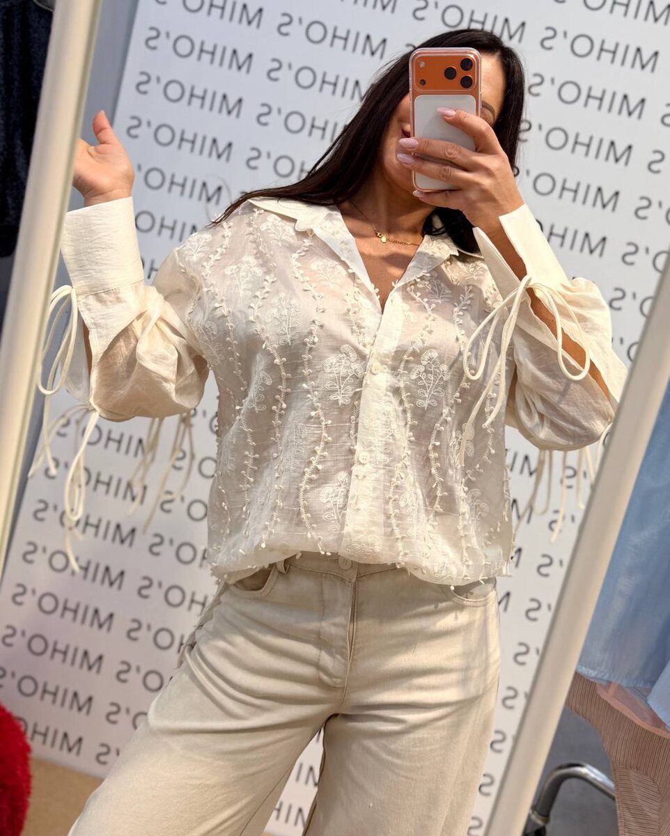 Рубашка хлопковая с завязками на рукавах