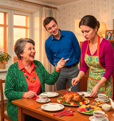 Антонина Ивановна с шумом отодвинула тяжелый стул и обвела взглядом праздничный стол. В центре, в окружении фарфоровых тарелок и хрусталя, суетилась Наталья. Она поправляла салфетки, переставляла соусники и старалась не смотреть в сторону свекрови.