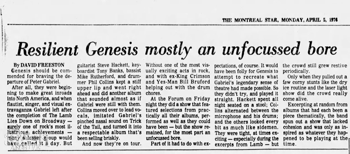 5 апреля 1976 года вышло несколько материалов об уже прошедших выступлениях группы в Канаде. Так первый из них был опубликован в газете