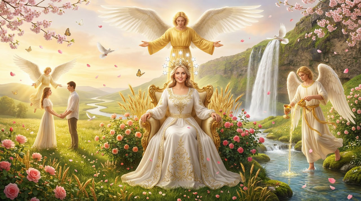🧘♀️ Медитация с Императрицей. Положите карту перед собой, закройте глаза. Представьте, что вы сидите в её саду. Вокруг цветут розы, шумит пшеничное поле, журчит ручей. Вы в полной безопасности, любимы и Вы достойны этого. Дышите этим ощущением. Впитывайте его каждой клеткой тела. Побудьте в этом саду столько, сколько захочется.