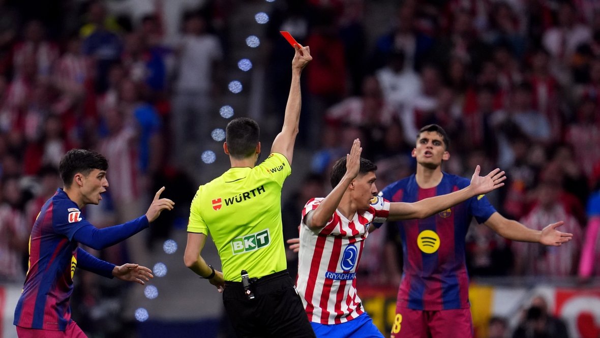 За несколько часов до старта матча с «Атлетико» «Барселона» получила роскошный подарок от «Мальорки». Команда, находящаяся неподалеку от зоны вылета, обыграла «Реал», и каталонцы получили возможность увеличить отрыв от ближайшего преследователя до семи очков. В случае победы трудно было бы представить, что действующий чемпион разбазарит такое преимущество за восемь туров. Но в соперниках у «Барсы» был «Атлетико» — одна из самых крепких команд континента, способная обыграть кого угодно. К тому же именно мадридцы выбили сине-гранатовых из Кубка Испании, нанеся им поражение 4:0 в первом полуфинальном матче на «Метрополитано». Крупнейшее в тренерской карьере Ханси Флика. Плюс вышли в четвертьфинал Лиги чемпионов, где буквально через несколько дней встретятся с «Барселоной» снова. Можно сказать, что матч чемпионата задал тон этому противостоянию. Так что, как видите, интриг здесь получился целый клубок. «Барсе» предстояло тяжелое испытание. Во-первых, в команде очень много сборников, которы