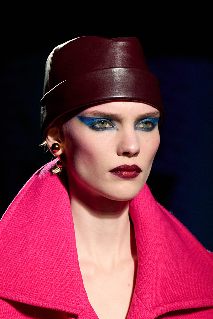 В этом сезоне на подиуме Balenciaga царил цвет благодаря сотрудничеству модного дома с Сэмом Левинсоном, создателем «Эйфории». Следуя примеру визажистов из популярного сериала, модели демонстрировали румяна пастельных оттенков, щедро и аккуратно растушеванные по скулам. А на веках снова появились насыщенные тени, доходившие до самых надбровных дуг.