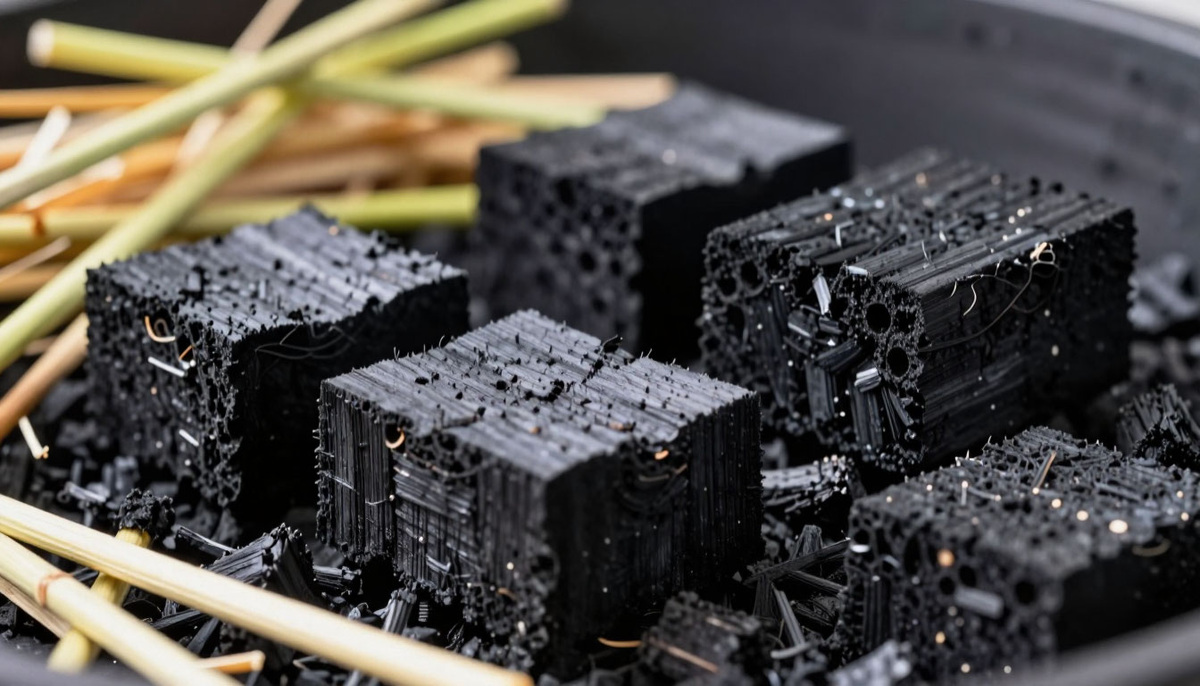 Это не обычный уголь из мангала, а особый материал, получаемый при термической обработке органических отходов (древесины, соломы, шелухи) в условиях ограниченного доступа кислорода.