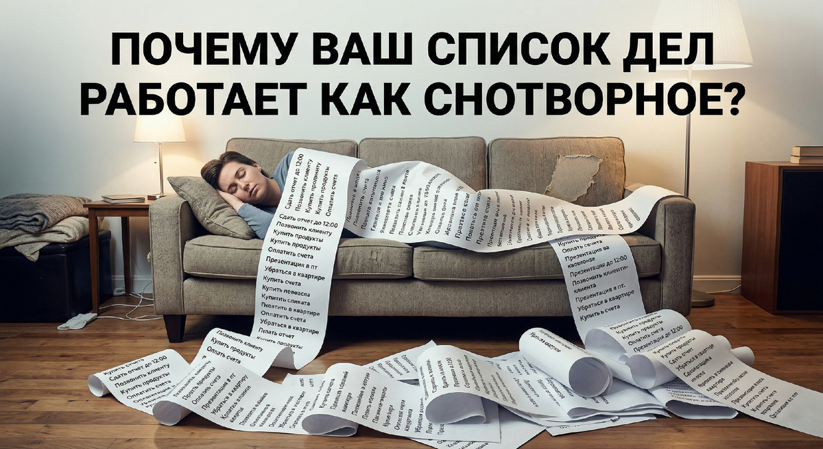 Это не про планирование. Это про контроль — вернее, про его иллюзию. В народе есть точное слово для такого состояния: суета. Вроде бы всё время чем-то занят — а толку нет. К вечеру спросишь себя: что сделал? И ответить нечего, потому что весь день ушёл на подготовку к делам, которые так и не начались.