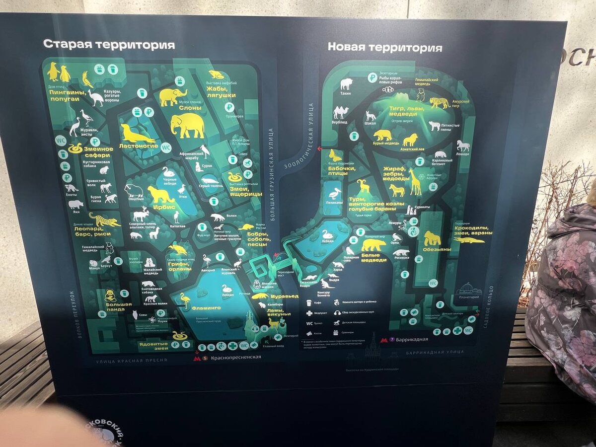 Даже не представляю, что плохого можно сказать про Московский Зоопарк, кроме цены. Цена действительно высокая, но что сейчас низкое? За большую территорию, количество зверей — как будто оно того стоит. А с учётом того, что москвичам дети до 17 лет и многодетным бесплатно — за это моё сердечное «благодарю». Потому что эти деньги, которые потратила сестра, мы потом проели в «TheБык». Но это совсем другая история. Документы смотрят. Удостоверение, форма 8 для московских детей, свидетельства, дети должны быть вписаны в паспорт. Логика построения маршрута: мне больше нравится начинать со старой территории (от большого центрального входа), 2 минуты от Баррикадной. Начинаем с панды Катюша. А дальше — манул Тимофей, гималайские медведи, жирафы, пингвины, слоны, ластоногие. Кстати, Ластоногие — это новый павильон. Просто обалденный. Если раньше можно было с улицы в окошечко смотреть, как они плавают тюлени, то сейчас можно зайти внутрь бассейна, там огромные окна. Невероятная красота. И туда