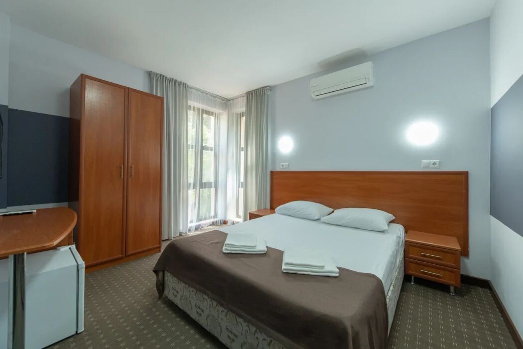 Семейный номер двухместного стандарта будет идеальным выбором для комфортного отдыха после насыщенного дня. С площадью 18 квадратных метров, этот номер обладает всем необходимым: удобная двуспальная кровать, мини-холодильник, телевизор и кондиционер обеспечат вам уютную обстановку. В вашем распоряжении будут полотенца, туалетные принадлежности и доступ к беспроводному интернету. Заезд возможен с 14:00, а выезд — до 12:00, что позволит вам удобно спланировать свое время и насладиться всеми прелестями Крыма в удобном вам ритме.