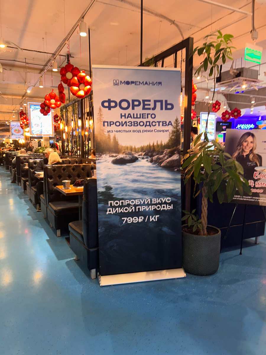 были недалеко захотелось сходить на Яндекс оценка 4.7.Очень большой удобный ,много столиков было заполнено,но столик и нам нашелся ) Мореманию основал Виталий Корнев он закончил московский физико технический институт .В 19991 основал Северную компанию и занимался красной икрой ,сейчас это комбинация магазина и ресторана