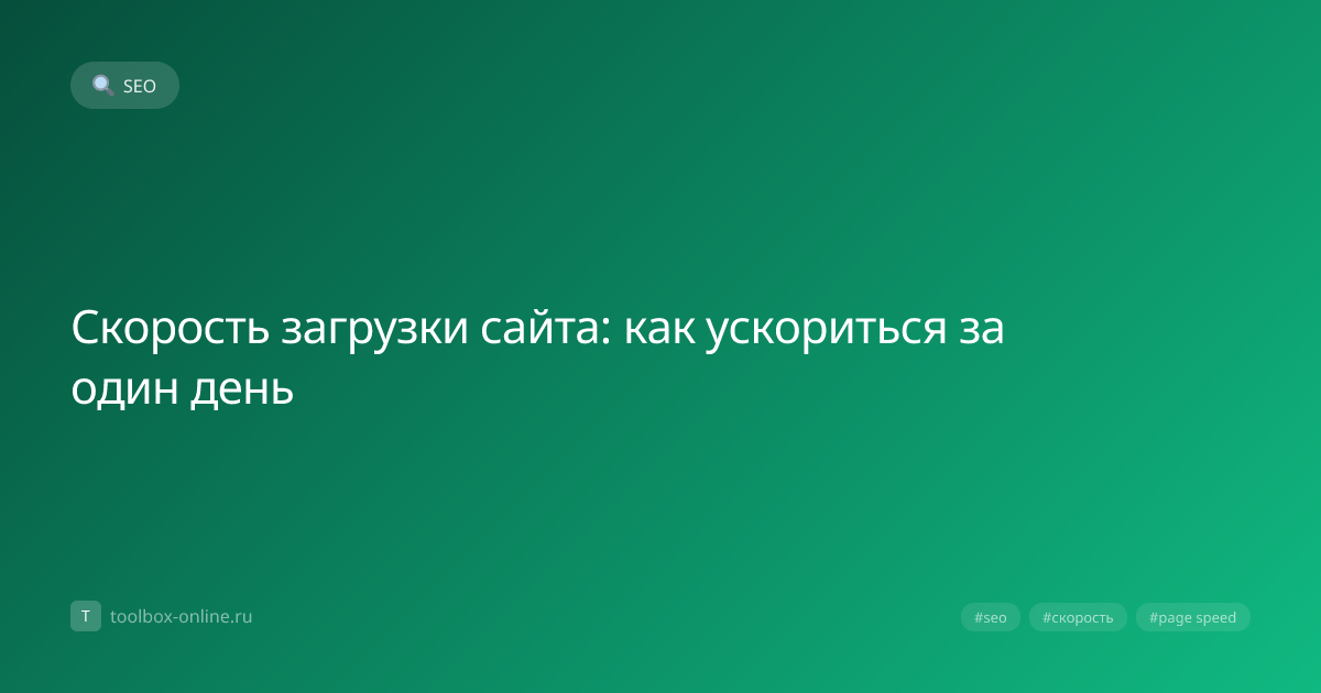 Скорость загрузки сайта — официальный фактор ранжирования в Google с 2021 года (Core Web Vitals). Каждая дополнительная секунда загрузки увеличивает bounce rate на 32%. Если сайт грузится более 3 секунд, вы теряете до половины посетителей ещё до того, как они увидят контент. Подключите CDN (Cloudflare бесплатно) — ускорение на 30–50%. Оптимизируйте изображения — экономия 50–70% трафика. Включите gzip/brotli сжатие на сервере — уменьшение HTML/CSS/JS на 60–80%. Эти три действия можно сделать за 2–4 часа без переписывания кода. Совет: измерьте скорость до и после оптимизации с помощью Google PageSpeed Insights и WebPageTest. Сохраните скриншоты результатов — это мотивирует продолжать и показывает прогресс клиенту или руководству. Наш инструмент анализирует скорость загрузки вашего сайта и выдаёт конкретный план оптимизации с приоритетами и ожидаемым эффектом.