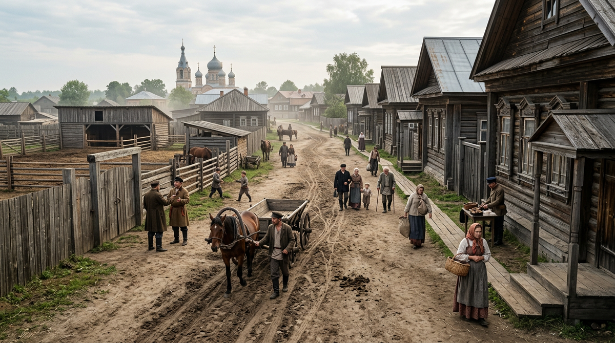 В Краснослободске XIX века город не проявляется сразу, он словно растворён в собственном пространстве, которое не спешит открываться. Здесь нет резких границ, нет чётких линий, всё выглядит так, будто слегка смягчено временем и воздухом. Улицы, дома, даже звуки — всё кажется приглушённым, но не пустым, а наполненным внутренним спокойствием. И чем дольше находишься здесь, тем яснее становится: этот город не нужно рассматривать, его нужно прожить. Улицы Краснослободска не создают ощущения направления, они не ведут к центру или к важной точке, они словно остаются внутри себя. Грунтовые дороги мягкие, с едва заметными следами движения, которое не превращается в поток. Дома стоят не слишком близко, но и не отдаляются друг от друга, удерживая пространство в равновесии. Идёшь по такой улице — и кажется, что она не меняется, а просто продолжается. Застройка Краснослободска выглядит сдержанной, без желания привлечь внимание или задать тон. Деревянные фасады простые, слегка потемневшие, с миним
