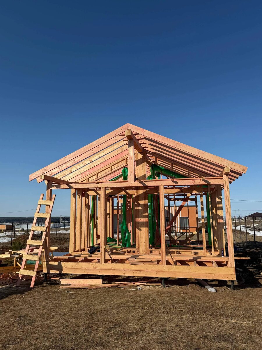 Всем привет! На связи РигХаус, показываем наш объект в селе Ильбухтино, Набережные Челны. 📐 О проекте: 36 м² жилая площадь + 12 м² крытая терраса. Внутри: спальня, кухня-гостиная, санузел. Компактный дом для круглогодичного проживания или дачи. 🔨 Что уже сделано за 14 дней: ✔️ Фундамент на винтовых сваях — надёжная основа ✔️ Обвязка и черновой пол смонтированы ✔️ Каркас стен поднят, стропильная система собрана ✔️ Весь материал обработан огнебиозащитой — защита от гниения и возгорания Хорошо видны зелёные элементы — это пароизоляция, которая защищает конструкцию от влаги изнутри. 🎨 Отделка: Снаружи дом будет обшит металлосайдингом — практично, долговечно, не требует ухода. Внутри — имитация бруса. Натуральное дерево создаёт уют и атмосферу настоящего деревянного дома. 📸 Что дальше: Впереди утепление, кровля, окна, внутренняя отделка, коммуникации. Большая работа продолжается — будем делиться тем, как преображается дом на каждом этапе! В статье — фото с объекта. 📌 Остались вопросы и