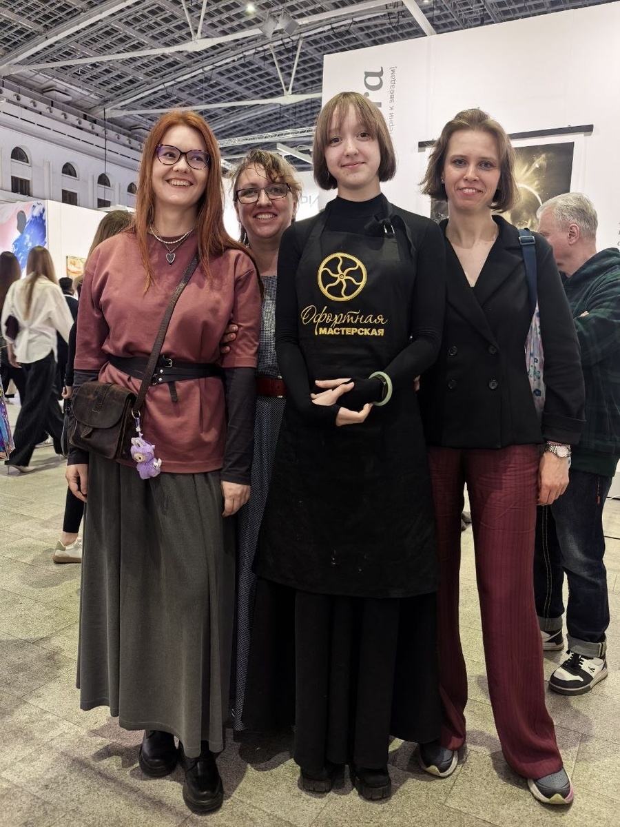 нашей мастерской офорта". Было чувство, словно мне протянули руку из прошлого - десять лет назад я занималась живописью. У их с сестрой стенда было очень оживлённо, каждому предлагали напечатать линогравюру на станке – тоже их собственного производства. Люди с восторгом крутили колесо станка, кто-то с интересом рассматривал уже готовые оттиски. Мне эта встреча дала чувство опоры: когда видишь чужой долгий и успешный путь в творчестве, увереннее становится на своём. Проходя по залам, словила эффект синестезии: от некоторых картин буквально ощущала запах. Вот, например, девушка в розовых фламинго пахнет клубничным мороженым, бабл-гамом и пузырьками газировки. Для парфюмерии синестезия довольно важное качество, позволяющее ассоциировать запах с другими ощущениями - цвет, форма, вкус, звуки. Поделилась наблюдением с художниками. Продолжение в комментариях. #артроссия