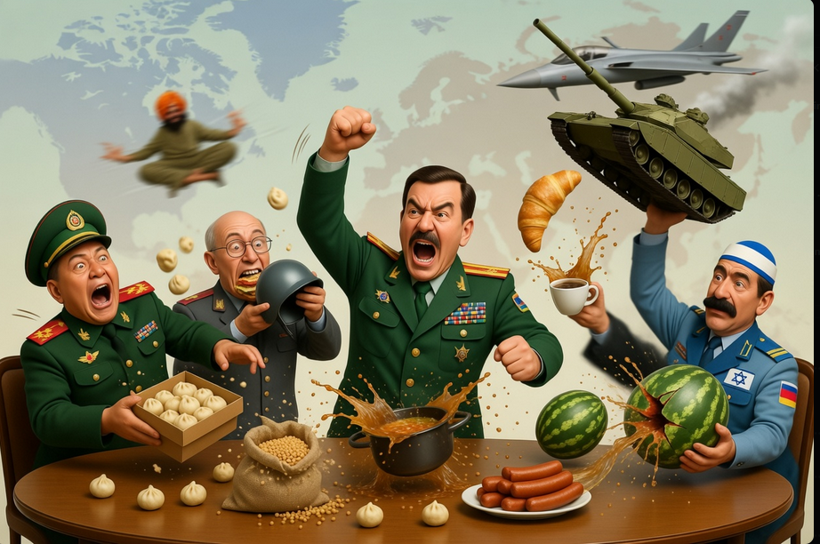 — А наш солдат подключен к сети «Великий дракон». Скорость — 500 мегабит, плюс доставка пельменей на точку. Российский генерал:
