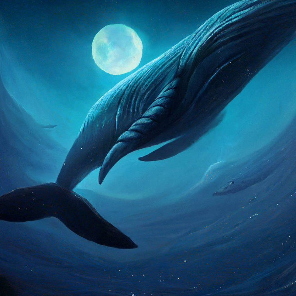 Жил-был в глубинах синевы океана Старый Кит. Его тело было покрыто морской зеленью, а глаза светились мудростью многих лет. С самого детства он был очарован Луной, которая каждую ночь поднималась над горизонтом, наполняя мир нежным светом и магической песней. Старый Кит всю жизнь плавал в поисках отражения Луны в водах своего любимого океана. Составляя мечты из её света, он искал то волшебное сияние, которое, казалось, манило его ближе к себе. Каждый вечер он поднимался к поверхности, чтобы увидеть, как Луна заливает океан своим мягким светом, и чувствовал, как сердце наполняется радостью. Свет Луны делал бездну такой прекрасной, такой глубокой и полной надежды. Прошло много лет. Старый Кит наблюдал, как молодые дельфины радуются жизни, как морские черепахи медленно плывут мимо, но он всегда искал только путь, который уводил его к Луне. Он понимал, что не сможет доплыть до неё, но каждый миг, проведённый в её свете, был для него бесценным. Однажды, чувствуя, что его время подходит к к