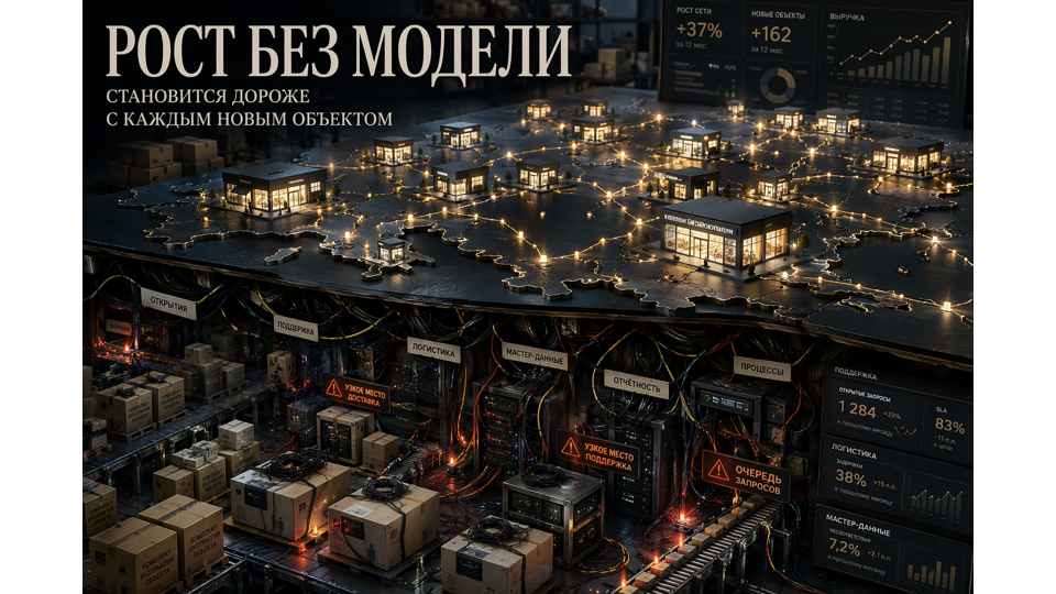 Если не масштабируются роли, данные, support, логистика, мощности, отчетность и правила эскалации, компания будет платить за каждый новый объект все дороже.