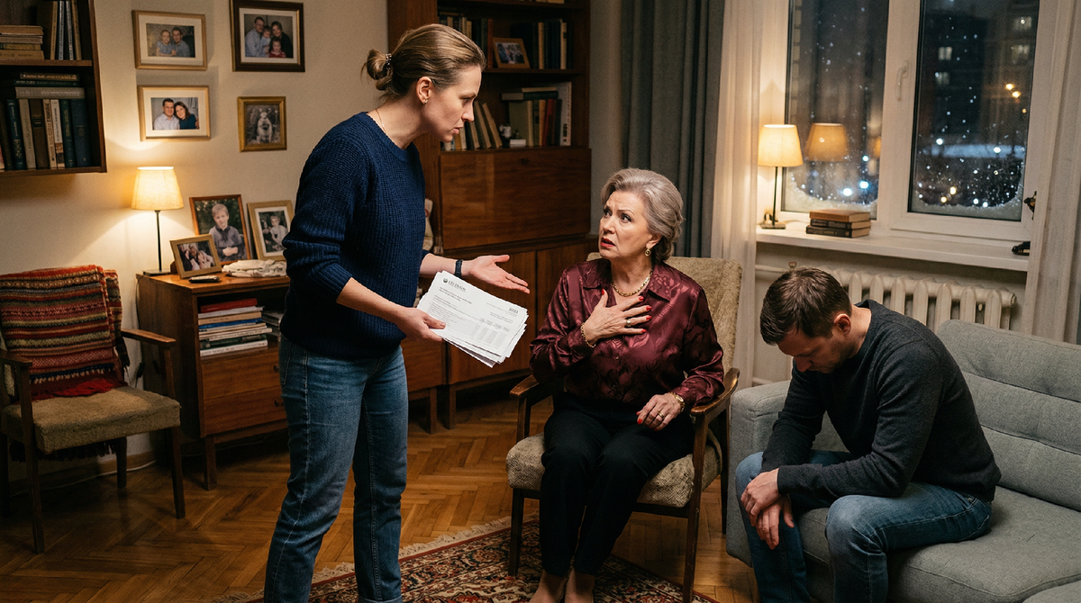«Это значит, Галина Сергеевна, что я знаю о вашем долге перед банком, — Марина положила на стол распечатки. — Знаю, что ваша квартира заложена. Знаю, куда ушли деньги. И знаю, что моя квартира нужна вам не для "защиты семьи", а для спасения от собственных финансовых ошибок».