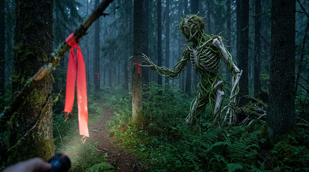Это был идеальный засадный хищник. Оно не бегает за добычей, тратя энергию. Оно обладает чудовищным, инстинктивным интеллектом. Существо поняло принцип, по которому чужаки перемещаются в его лесу. Оно находит размеченную тропу и начинает методично переставлять маркеры у тебя за спиной. Оно запирает жертву в бесконечной лесной петле, заставляя человека ходить по кругу до тех пор, пока тот не сойдет с ума и не упадет от обезвоживания и полного истощения. И только тогда этот «лес» приходит забрать свое.