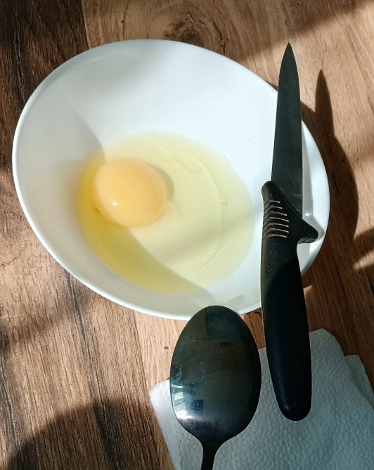 Сначала я просто вылила содержимое яйца в тарелку.