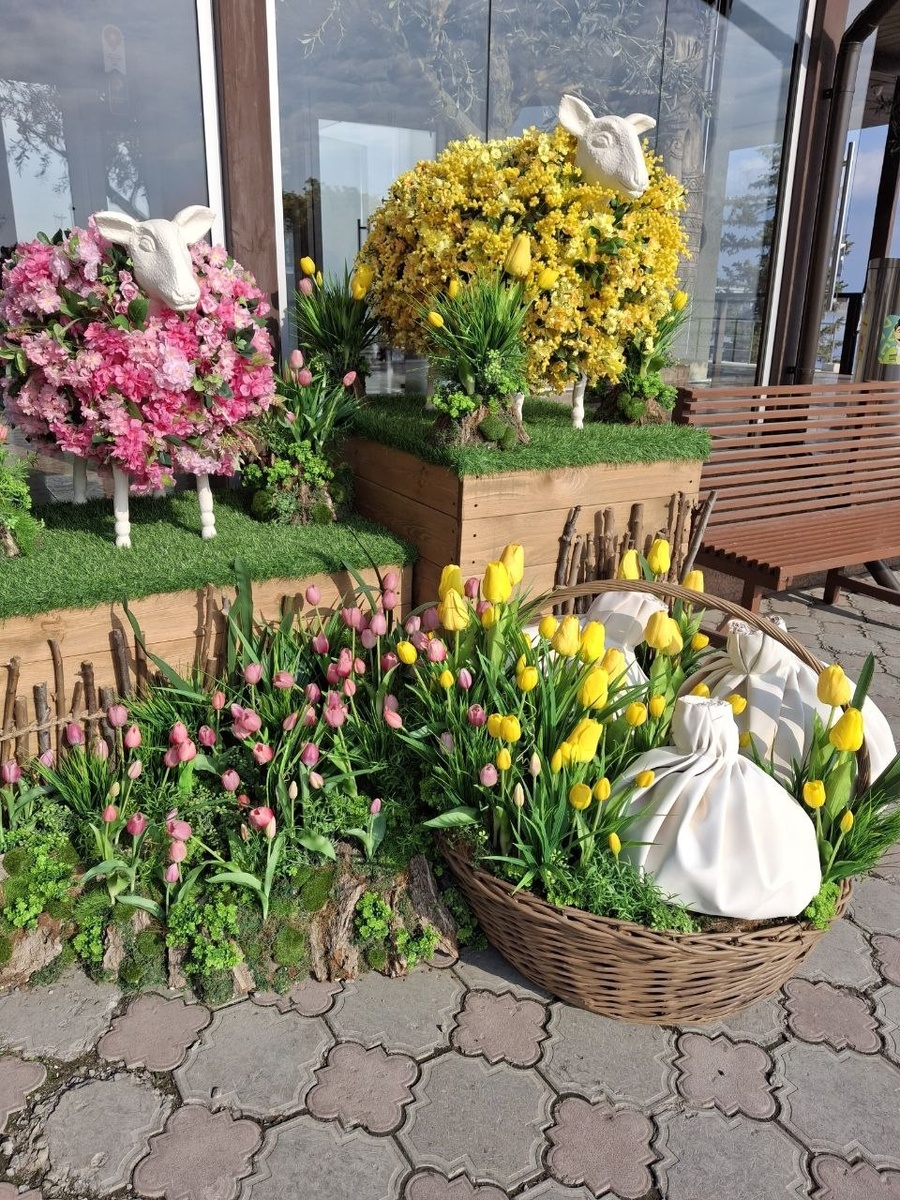 Заведения Саратова продолжают обновлять декор на весенний: смотрите, какие очаровательные цветочные овечки и корзинка с хинкали у «Хванча