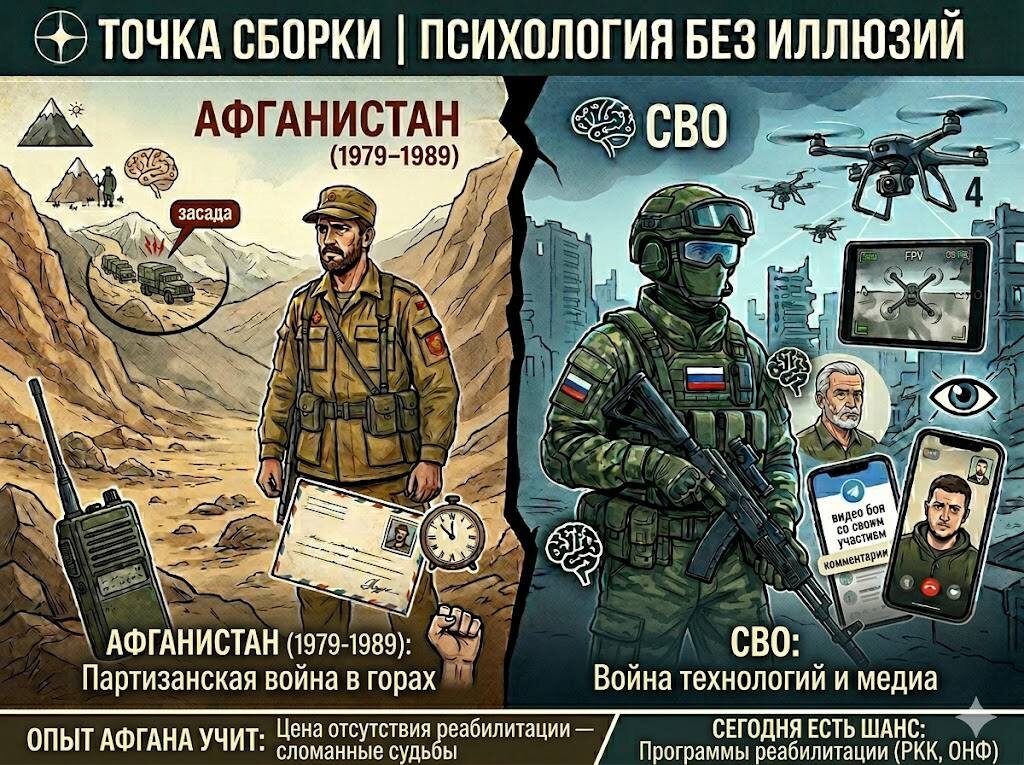 Общее у этих войн одно: в обоих случаях на войну идут живые люди. И этим людям нужна не красивая аналогия, а реальная помощь. «Афганцев» бросили — и это обернулось трагедией для целого поколения. Сегодня есть шанс не повторить эту ошибку. Но шанс — это ещё не гарантия.