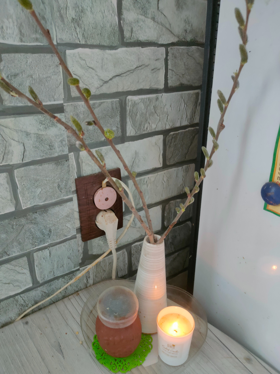 Доброго дня всем вам, милые дамы , верные спутники моего канала, а также те, кто из интереса заглядывает на его страницы! Меня зовут Надежда, и я приглашаю Вас на мою кухню, где покажу Вам мое меню на день. Всех поздравляю с Вербным воскресением. С утра, хотя оно и было пасмурное, сходила в сад и сорвала вербу, а Бобби остался гулять. Я же пошла готовить завтрак. Мудрить с ним не стала. Завтрак: творог со сметаной, изюмом, курагой, все присыпала сахарной пудрой, сварила черный натуральный кофе, сделала к нему два бутерброда с творожным сыром и мясом и с вегамаслом и слабосоленым тунцом, положила их на салат айсберг. Бобби утром никогда не ест. Сегодня, хотя и день праздничный, планирую поработать в саду, надо убрать в компостную кучу листву, которую я собирала в начале недели. Поработала ударно, более 3-х часов. Почистила еще щавель, он еще маленький. но можно уже и пощипать для супа, В теплице никак не хочет всходить капуста и цветы, а вот такой уже редис, салат. Даже на улице лук вы