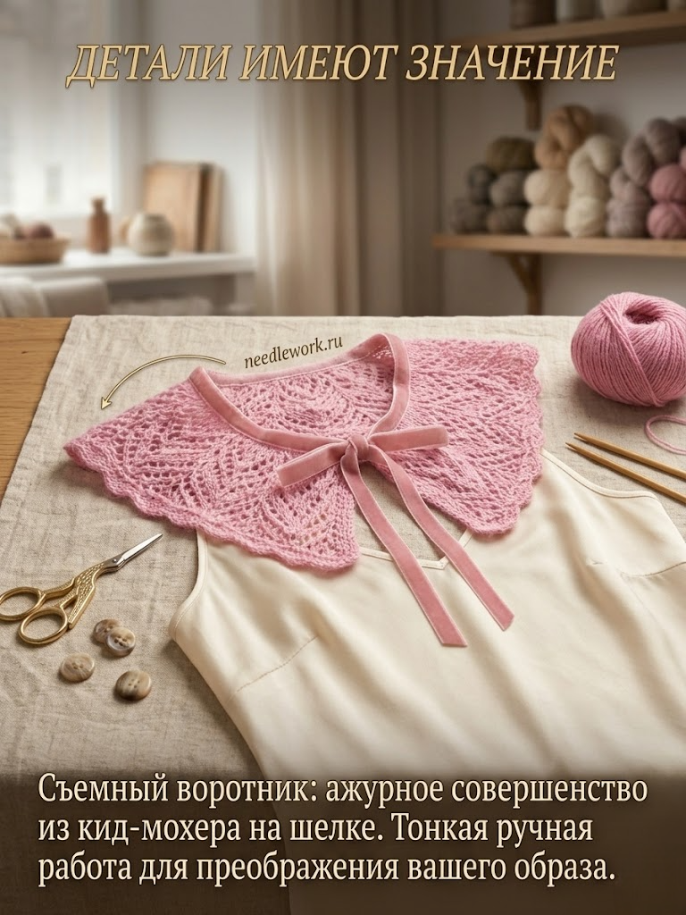 Весна — самое коварное время для гардероба. Утром еще чувствуется дыхание зимы, а днем солнце припекает совсем по-летнему. В таких условиях концепция «капсульного конструктора» становится спасением. В Needle-Workshop мы разработали трио аксессуаров, которые работают как единая экосистема. Всего три изделия — шаль «Дыхание весны», микро-жилет и съемный воротник — позволяют создать десятки комбинаций. Разберем, как носить эту «умную» базу в разных ситуациях. Для встреч, где нужно выглядеть профессионально, но не слишком строго, мы используем приемы Quiet Luxury (тихой роскоши). Когда в планах долгая прогулка и кофе с подругами, на первый план выходит многослойность и игра фактур. Вязаные вещи могут быть невероятно нарядными, если правильно подобрать состав и цвет. Секрет этой капсулы — в материалах. Мы используем меринос, кашемир и кид-мохер на шелке. Эти составы обладают природной терморегуляцией: в них не жарко в помещении и тепло на улице. Совет от Needle-Workshop: Выбирая цвета для