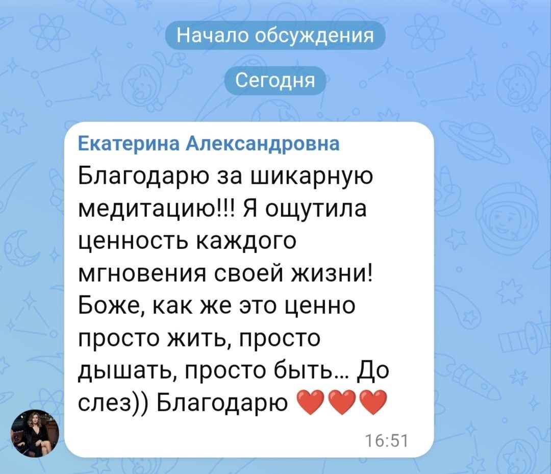 Уже готовлю для Вас новую практику, на те энергии, которые чувствую.