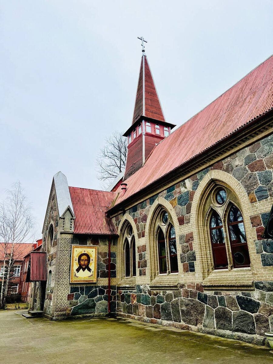 Отели, музеи, лавки с янтарём — посёлок растёт с каждым сезоном🌞 Особое внимание , хочу уделить одной кирхе. Конец XIX века, валуны и фигурный кирпич. Освятили её 3 января 1892 года. После войны там был клуб, спортзал, даже склад. А в 1990 году здание передали РПЦ, и 13 января 1991 года освятили как храм Казанской иконы Божией Матери ⛪️ И представьте — это точная уменьшенная копия капеллы Святого Георгия из королевского замка Монбижу под Берлином. Янтарный растёт и удивляет. Пора и вам это увидеть😉 Сделать это можно на нашей экскурсии : «Лучшие локации побережья: Балтийск+Янтарный+Светлогорск+Филинская бухта» С теплом, ваш Валера 🚌