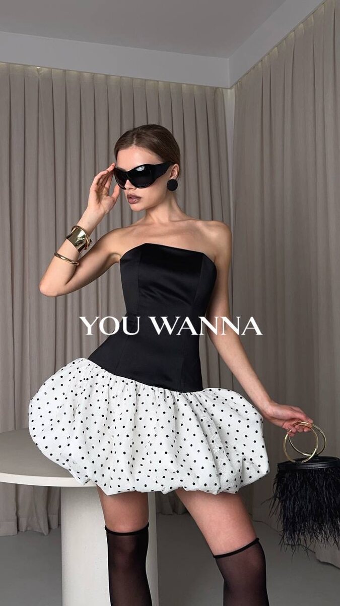 Платье в горох в стиле полька-дот с акцентным буфом - то, что нужно для эффектного выхода.