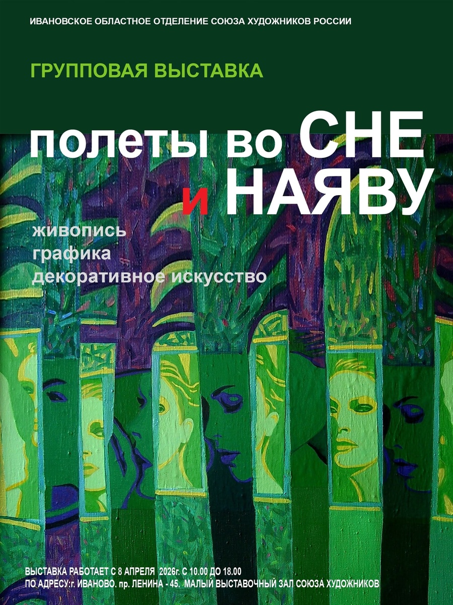 » 8 апреля в Доме художника в Иванове откроется групповая выставка «Полеты во сне и наяву». На ней будут представлены работы 10 известных ивановских художников: это Владимир Мухин, Александр Лесовщиков, Александр Климохин, Вадим Николайчук, Ирина Казимирова, Светлана Кузьмичева, Владимир Маяковский, Любовь Тощева, Людмила Большагина и Илья Бирюков. Название выставки выбрано неслучайно: ее гости смогут увидеть работы художников, исполненные загадочности, иллюзий, таинственности. Открытие экспозиции пройдет в 16 часов. (16+) Фото: Ивановское областное отделение Союза художников России