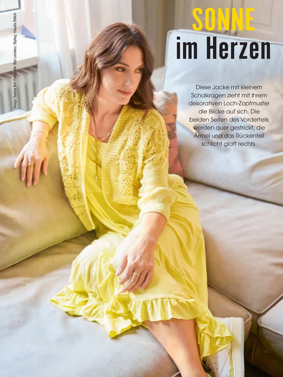 Солнечный ажурный жакет для лета. Спинка связана снизу вверх, а полочки — слева направо
