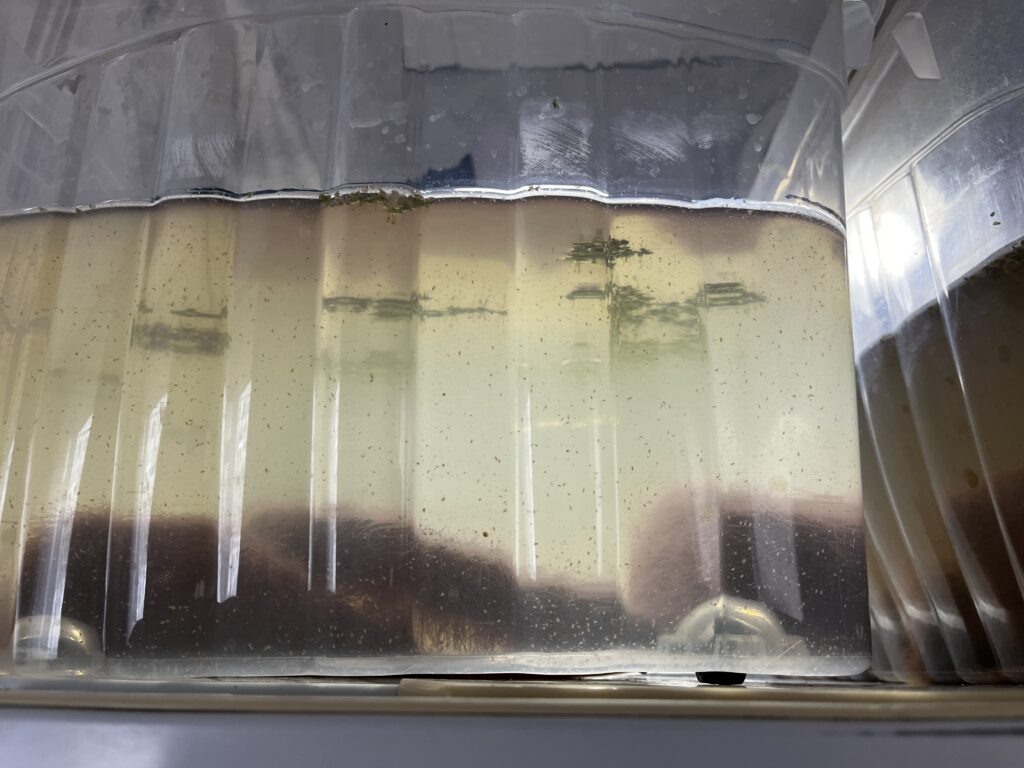 - Запуск культуры: Добавьте 30–100 дафний на литр. Если используете зеленую воду — сначала вырастите ее (на свету с удобрениями).