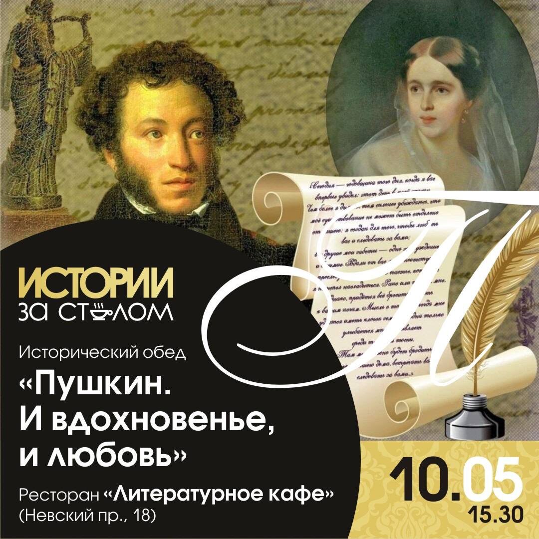 ❗️ ✍️Исторический ужин «Пушкин. И вдохновенье, и любовь» 10 мая в 15.30 🧭Ресторан «Литературное кафе» (Невский пр., 18) Мы приглашаем вас на обед, где прозвучит история жизни великого поэта в исполнении Татьяны Цветковой. А после лекции вы сможете продолжить вечер в ресторане и насладиться музыкальной программой. На нашем мероприятии от историка вы узнаете: ✨О единственной Музе: «деве тайной», строгой и нежной; ✨О даме, которую так и не удалось покорить поэту; ✨О коротком счастье «крепостной любви»; ✨О загадочном донжуанском списке и таинственном образе NN. В меню - блюда, историю которых вы узнаете: 1️⃣Печёная свёкла с жареной грушей и белыми грибами, с заправкой из молодых сосновых шишек. 2️⃣Котлеты «Демидовские» из молодых кабанчиков и бычков, с картофелем, паприкой, сельдереем, ломтиком бекона и ягодным соусом. 3️⃣Бланманже с малиново-клубничным джемом под карамельным куполом. 4️⃣Чай/кофе на выбор. Стоимость для нас - 6490 рублей. Для записи пишите в сообщения в сообще