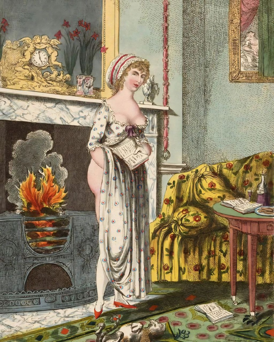 ! 📚 В левой руке у дамы красуется «Готический роман» «Монах» от Мэтью Грегори Льюиса. Тут вам и отсылки к любви, и даже картина с Данаей на стене! А еще каминные часы с путти – кто бы мог подумать, что часы могут быть такими романтичными? ⏰ И не забудьте про две открытые книги под названием «Поцелуи» и «Экономика любви» – звучит как идеальный план для вечера! Чарльз Уильямс, кстати, был не просто художником, а настоящим мастером карикатуры, гравюры и иллюстрации. С 1799 по 1815 год он был главным карикатуристом у С. У. Форса, ведущего британского издателя. Так что, если вы думали, что карикатуры – это просто смешные картинки, подумайте еще раз! Уильямс работал в стиле, который можно было бы назвать "смешно-серьезным". Так что, если вам нужно немного вдохновения, взгляните на его работы!
