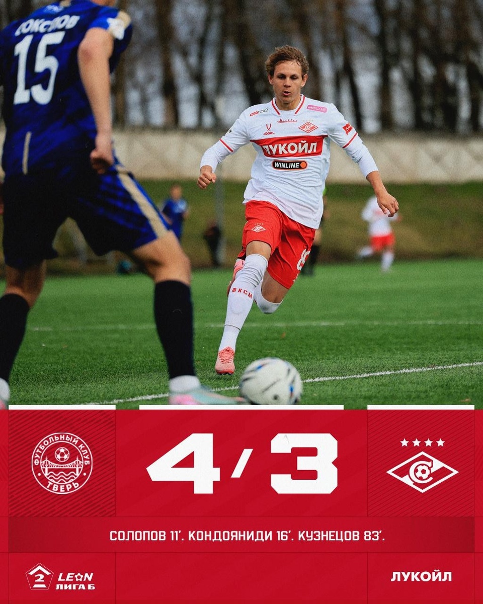 Сегодня в Твери прошёл матч молодёжных команд, который стал настоящим rollercoaster эмоций: "Спартак‑2" вёл 2:0 уже в первом тайме, но в итоге уступил хозяевам поля со счётом 4:3. Без звёзд Массалыги, Полеха и Сорокина команда показала, что умеет ярко стартовать - но не умеет удерживать преимущество. А тренерские решения Павла Фигона и игра вратаря Руслана Пичиенко только усугубили ситуацию.