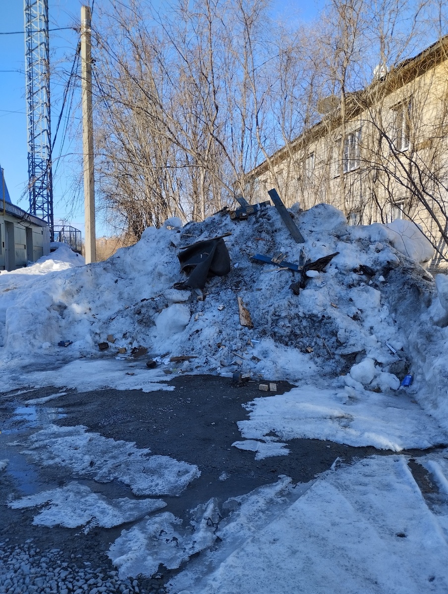 Броднева 32, Салехард, несколько дней назад - трактор сгрёб огромную кучу снега с мусором, но ее никто н вывез! Теперь все это тает и вода попадает под дом 35, ул. Подшибякина. А потом удивляемся почему деревянные дома так быстро ветшают и признаются аварийными