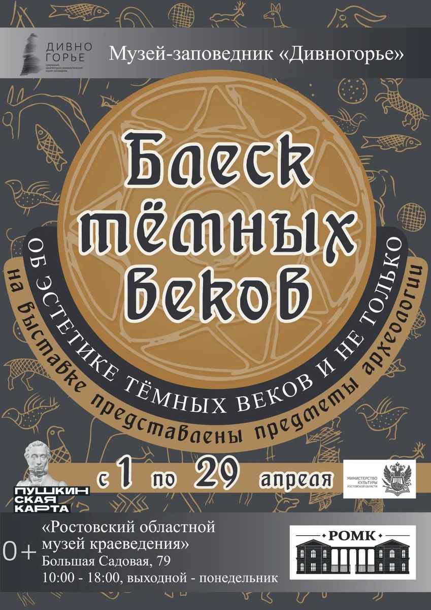 В Ростовском областном музее краеведения начала работу выставка «Блеск темных веков», посвященная украшениям населения юга Восточной Европы в эпоху раннего Средневековья. Воронежскую и Ростовскую области объединяет общая история, и одним из ее сюжетов является именно тот период, когда территории современных регионов входили в состав Хазарского каганата. Выставочный проект основан на коллекции археологических находок с памятников салтово-маяцкой археологической культуры, в частности с Маяцкого археологического комплекса, который расположен на территории музея-заповедника «Дивногорье». Помимо традиционных типов украшений, таких как перстни, серьги и браслеты, в коллекцию также вошли предметы женского туалета, амулеты и детали одежды. Выставка будет доступна для посещения до 29 апреля.