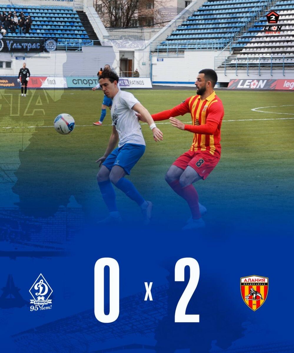Завершился матч в рамках Второй лиги Дивизиона А между командами «Динамо-Брянск» и «Алания» со счетом 0:2 в пользу гостей. На 58-й минуте встречи Хугаев открыл счет, забив первый гол, а на 69-й минуте Закиров удвоил преимущество своей команды, оформив второй мяч. Брянская команда активно атаковала на протяжении всего матча, однако реализовать созданные моменты не сумела. В настоящий момент «Динамо-Брянск» располагается на четвертой строчке в турнирной таблице, тогда как «Алания» продолжает занимать первое место. Следующий матч брянская команда проведет 11 апреля в 6:00 против «Динамо-Владивосток». 0+