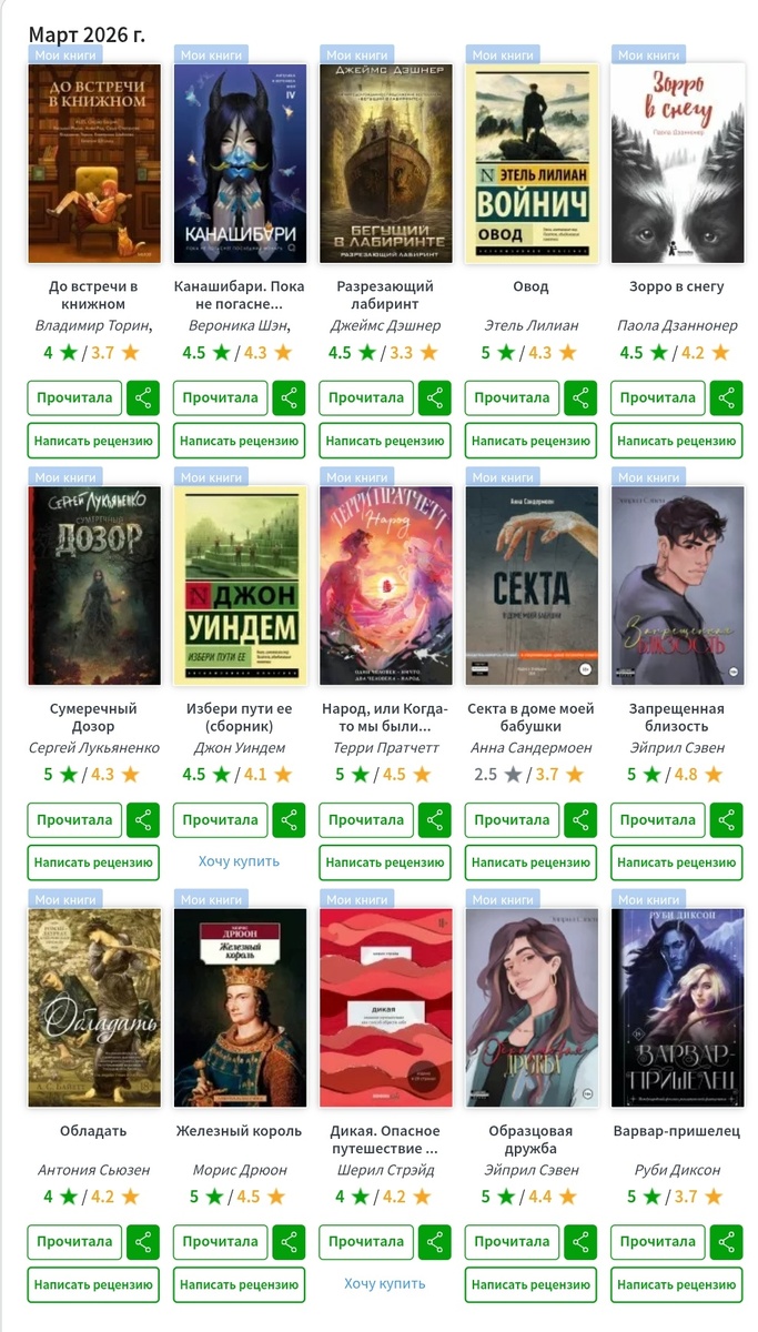 Все книги вы видите на скриншоте, в бумаге было аж четыре штуки. Учитывая мои последние соотношения бумаги и электронки, то я прямо молодец в марте.