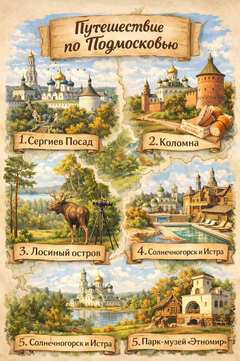 Каждое из этих мест подарит новые впечатления и поможет перезагрузиться после городской суеты. Выбирайте направление по душе — и отправляйтесь в путешествие по Подмосковью!