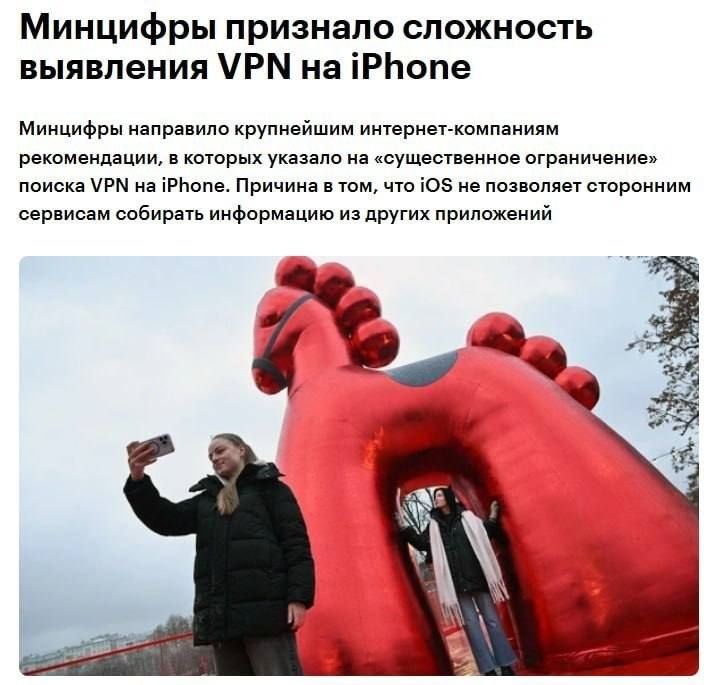 Суть в операционной системе Apple, которая изолирует сторонние приложения друг от друга, поэтому собирать или менять данные в них нельзя Помимо этого, Минцифры описала ещё ряд ситуаций, когда выявление VPN затруднено: VPN на роутерах, VPN в виртуальных машинах, прокси-серверы, Split tunneling, CDN и новые VPN-сервисы 📰Следите за новостями вместе с нами