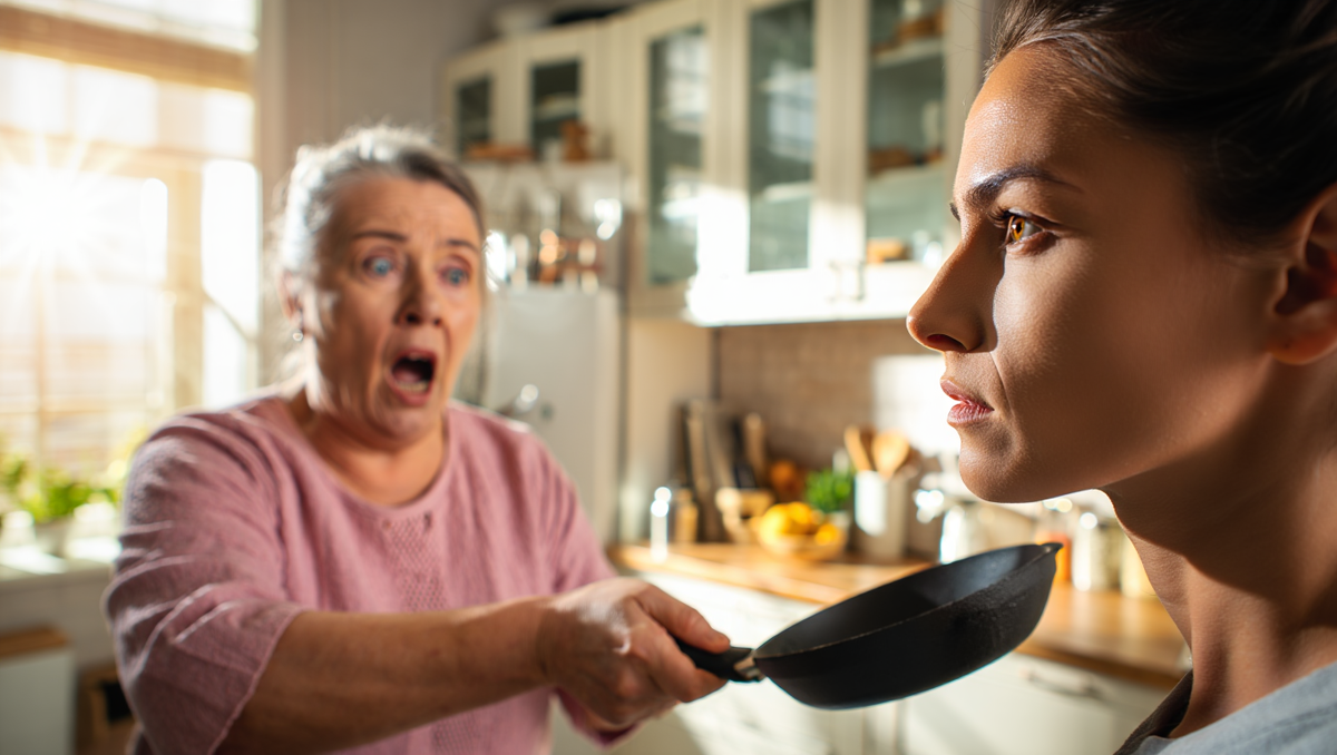 Свекровь застыла на кухне с чужой сковородкой в руках.