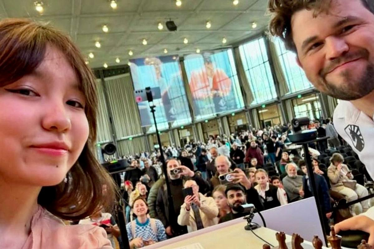 Перед началом партии Нурман попросила у Карлсена селфи. Он не отказал: оба спокойно сделали кадр, после чего телефон у неё