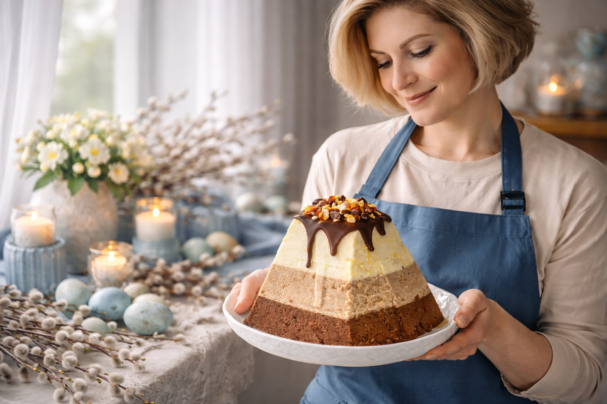 Но вот в чём загвоздка: творожная пасха бывает разной. Сырая — более нежная и свежая. Заварная — плотнее, богаче, спокойнее по текстуре. А двухслойная — это уже маленькое праздничное кокетство, когда ваниль и шоколад встречаются в одном разрезе.
