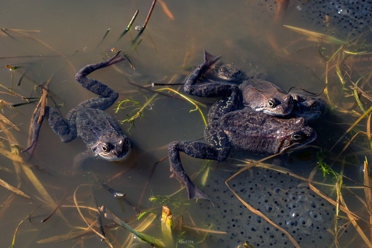 Вот ещё один затерявшийся пост, который я забыла опубликовать вовремя. 15 апреля прошлого года пошла я пройтись своим обычным маршрутом в Ржевский лесопарк, и в первой же канаве у входа в лесопарк увидела это. Вернее, сначала я услышала. Одновременное урчание сотен, если не тысяч, лягушек создавало достаточно громкий зуковой фон. Пригляделась - все лужи и канавы кишмя кишат копошащимися лягухами и их икрой. В очередной раз мысленно погладила себя по голове за то, что я всегда с собой беру видеокамеру ©, и полезла через чачу и грязюку поближе к увлечённо размножающимся животинам )) Вернувшись домой, показала фотки младшему, и на следующий же день мы с ним снова отправились в лесопарк, чтобы он тоже самолично всю на эту вакханалию посмотрел. Лягух уже было гораздо меньше. Всё ещё много, но такого скопления как вчера, когда лужи буквально шевелились, уже не было. Но мелкий всё равно остался доволен по уши. Мы зачерпнули из канавы и притащили домой шматок икры, и следующие полтора месяца р