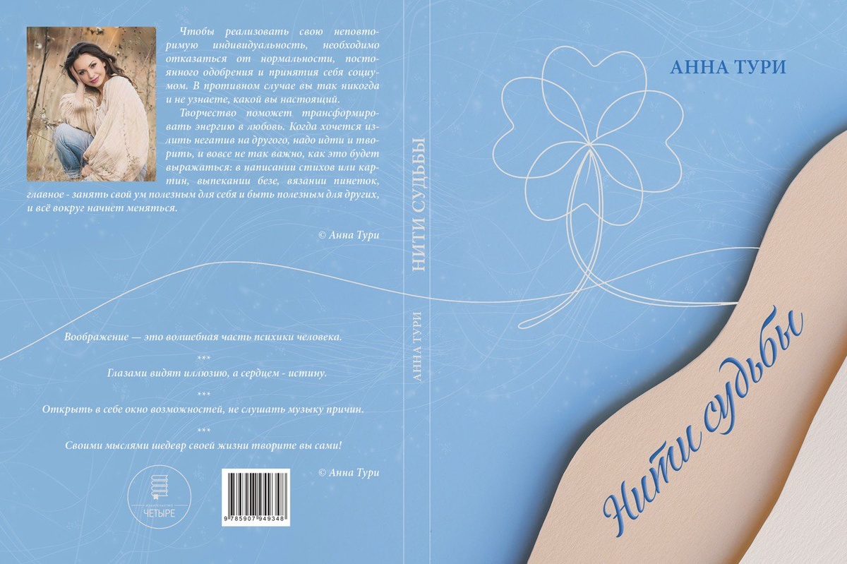 О книге. Нити судьбы По итогам премии «Литературный код» книга «Нити судьбы» Победитель в Номинация: Лучший сборник стихов. ___ Нити судьбы : любовная лирика / А. Тури. – СПб. : Четыре, 2025. – 116 с. ISBN 978-5-907949-34-8 Описание книги Сборник стихов «Нити судьбы» – это глубокое и проникновенное путешествие в мир человеческих чувств, где каждая строка словно соткана из тончайших нитей любви, грусти, надежды и воспоминаний. В ней переплетаются яркие образы природы, философские размышления о жизни и судьбе, а также искренние эмоции, которые находят отклик у читателей. Чем больше происходит погружение в книгу, тем чаще возникает ощущение, что каждая строка — это нить, связывающая прошлое, настоящее и будущее, а поэзия позволяет почерпнуть многогранность человеческой души. УДК 821.161.1 ББК 84(2Рос=Рус)6 © А. Тури, текст, 2025 ISBN 978-5-907949-34-8 © Издательство «Четыре», 2025